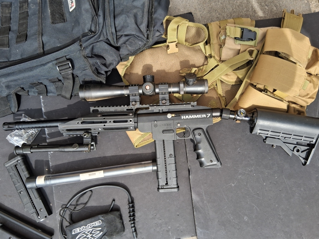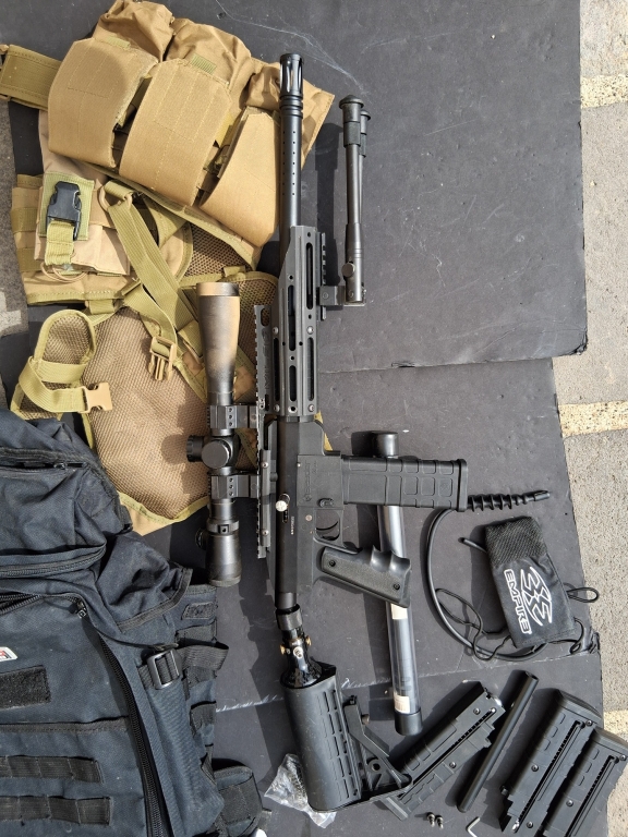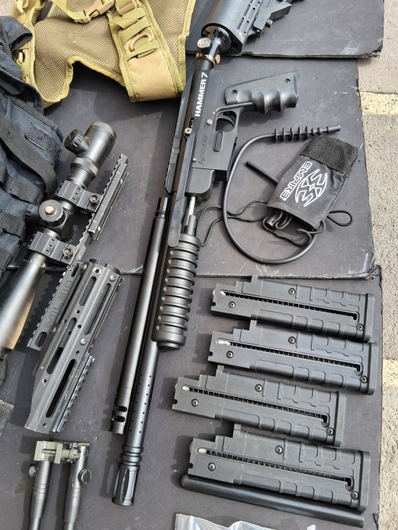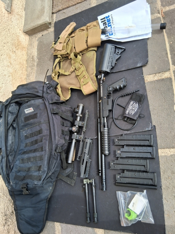 Bonjour vends ce kit Magfeed hammer 7 spyder custo sniper et pompe " montage unique" en bon état esthétique et de fonctionnement. Vendu avec sa bouteille 0.2l 3000 PSI (10/2017)de chez first strike, son bouchon de canon, le hammer 7 est le lanceur tactique magfeed de la marque américaine spyder. Lanceur customisable à l'infini, le hammer 7 un lanceur Magfeed compatible avec bille first strike (avec une alimentation en billes par un vrai chargeur et non un simple loader) semi-automatique. il est possible toute fois de jouer en loader si vous acheter un feed. le lanceur a été révisé et nettoyer , remis avec les internes d'origine. réglage 220 fps.