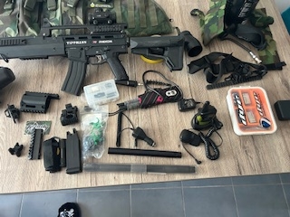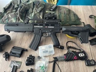 Je mets en vente mon lanceur tippman x7 phénom penser à graisser les joints et aucune fuite il fonctionne parfaitement bien. Dernière utilisation l’année dernière. Je l’ai fais réviser chaque année avant utilisation. il est équipé d’une crosse d’une poignée avant, d’une lunette tactique, il y a aussi la Mamba pour la bouteille d’air.. un porte lampe de poche. Etc